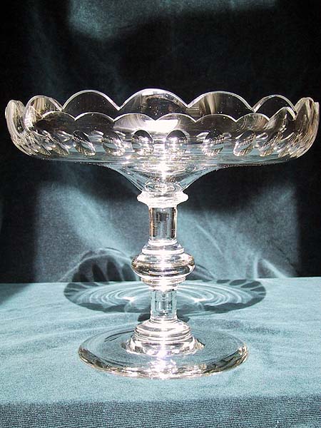 Glasschale auf hohem Fuß mit Olivenschliff und gewelltem Rand Aus Schweden ca. 1880-1900 ausgeschiffener Abriß Höhe : 19,5 cm Durchmesser : 24 cm