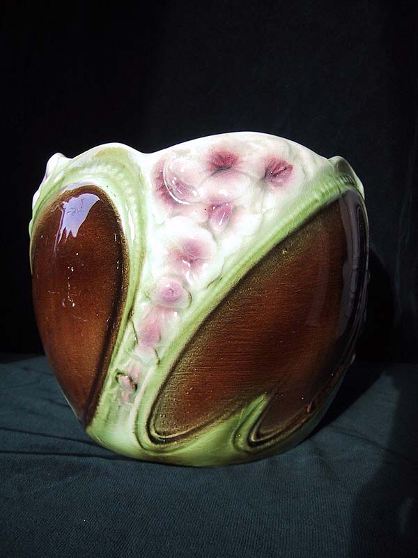 Jugendstil Blumenübertopf Braun / Grün / Lila Höhe : Durchmesser :