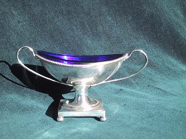 Salzfass, versilbert mit blauem Glaseinsatz gestämpelt WMF Västeras Metallfabrik Höhe : 6,5 cm Breite : 13 cm