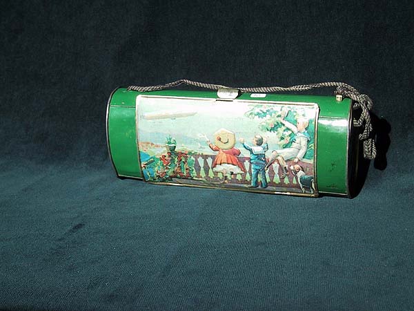 Botanisiertrommel aus Blech mit spielenden Kindern